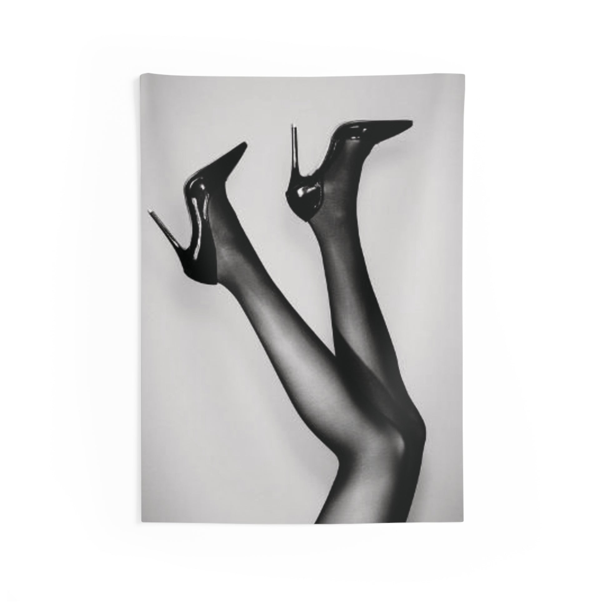 B&W Aesthetic Room Poster, Luxury illustration tapestry, Rich Aesthetic decor, High heels black and white poster