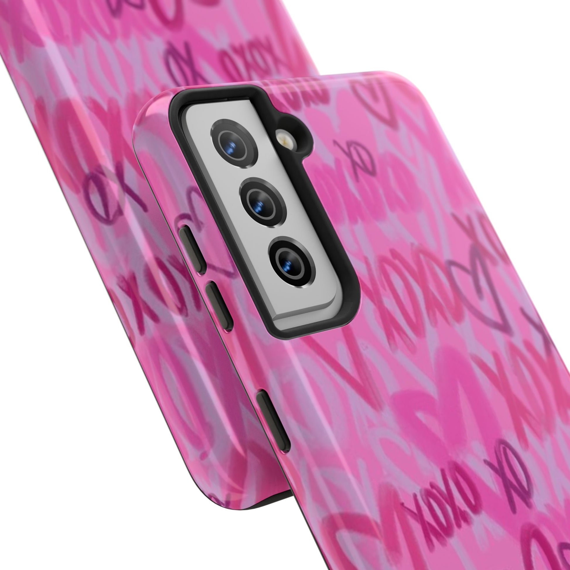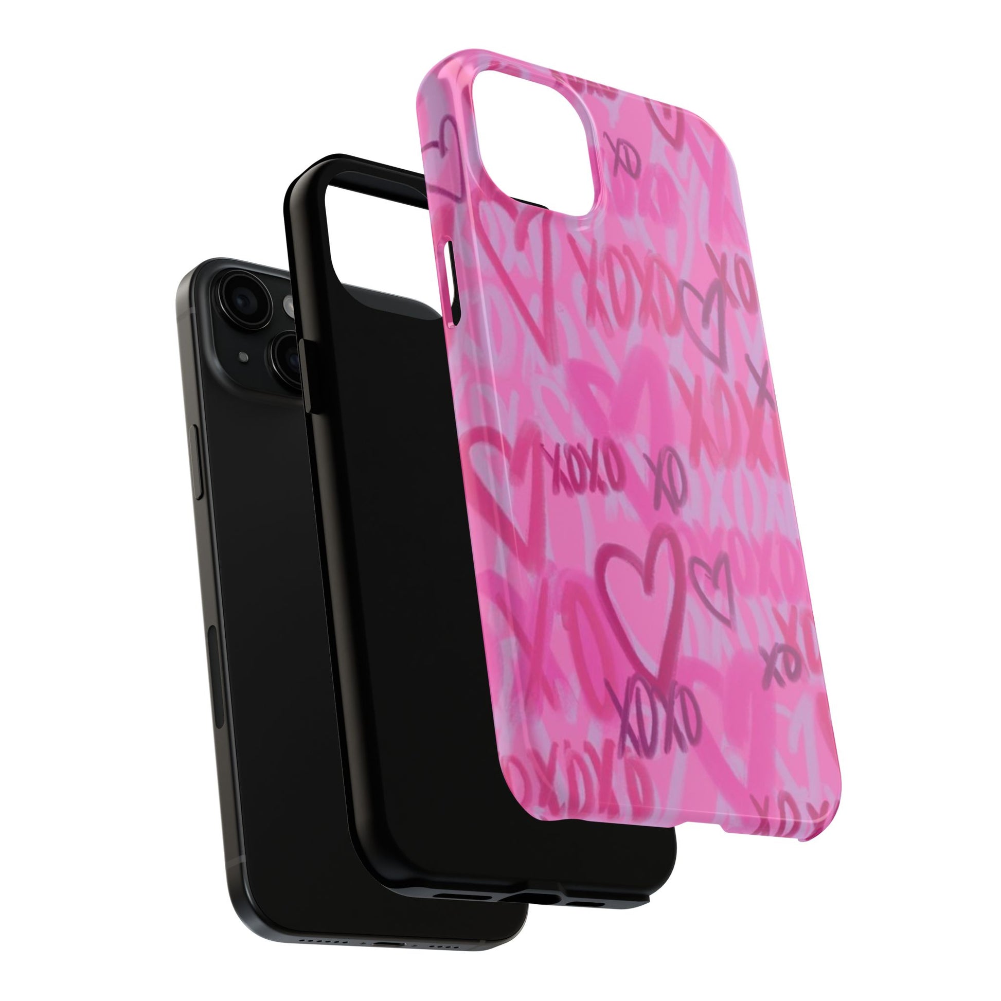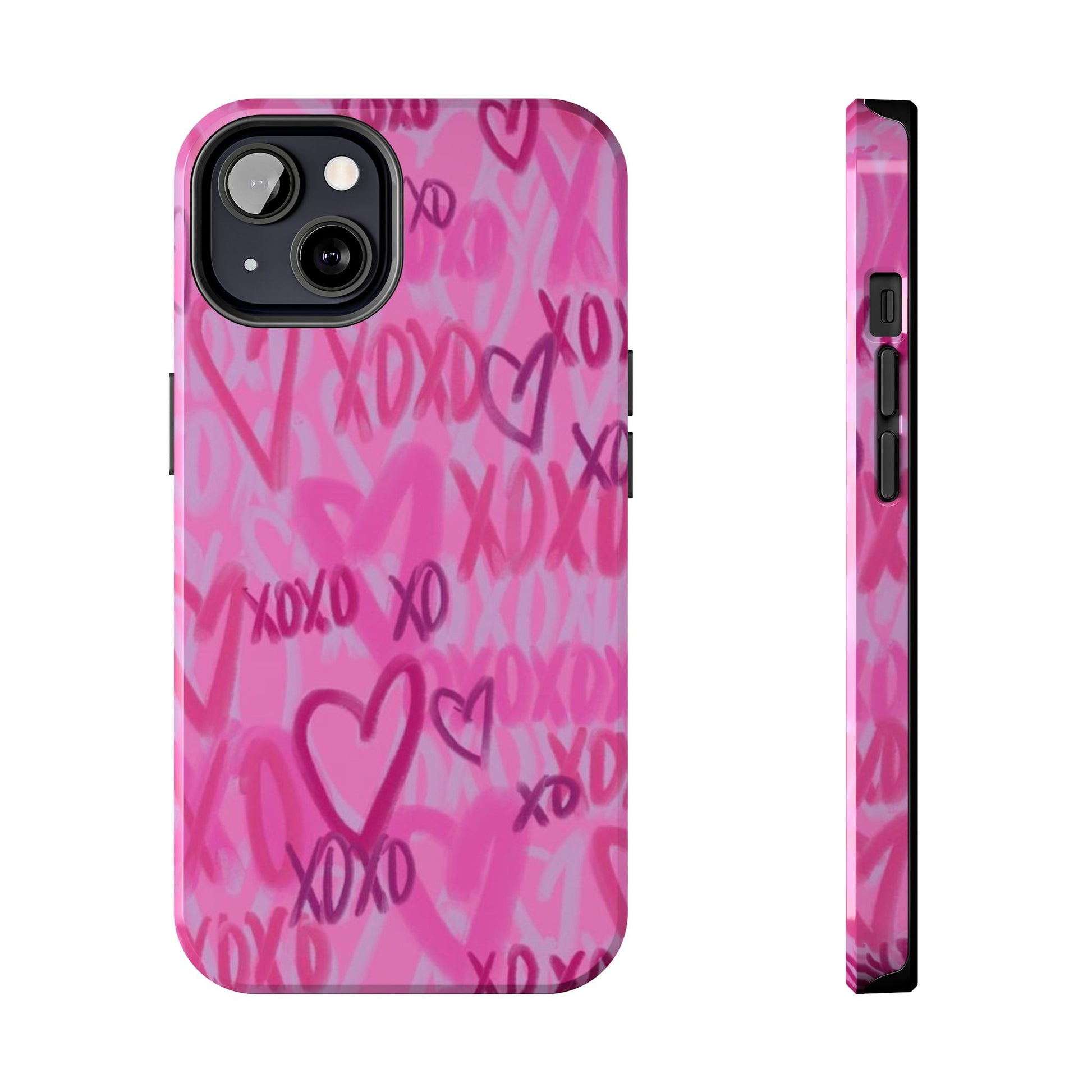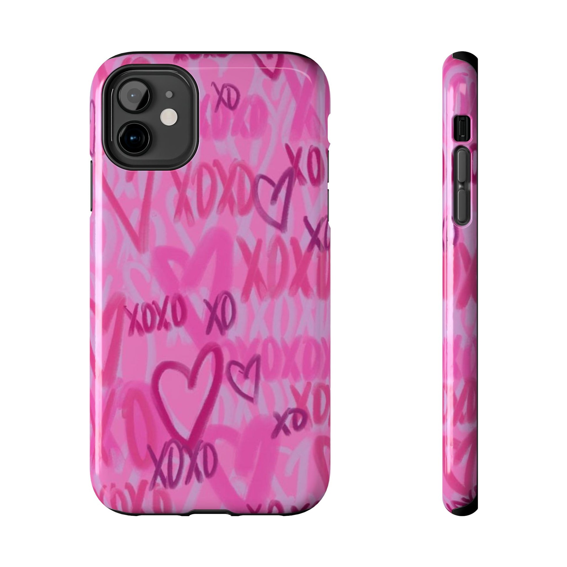 Glossy Phone Case, Graffiti, Spray Paint Hearts, Pink, Cute, Protective