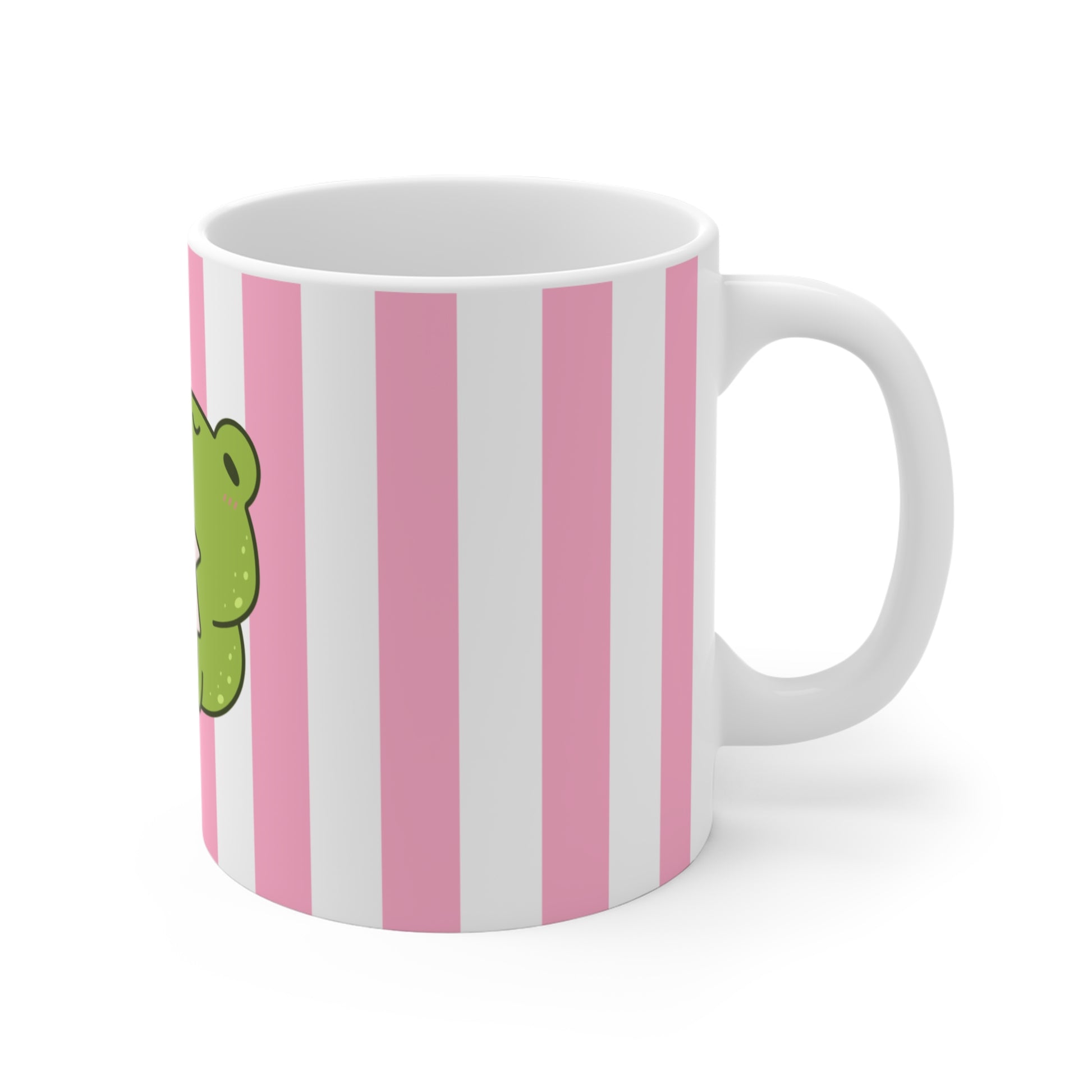 Kawaii Frog Mug with Pink Stripes