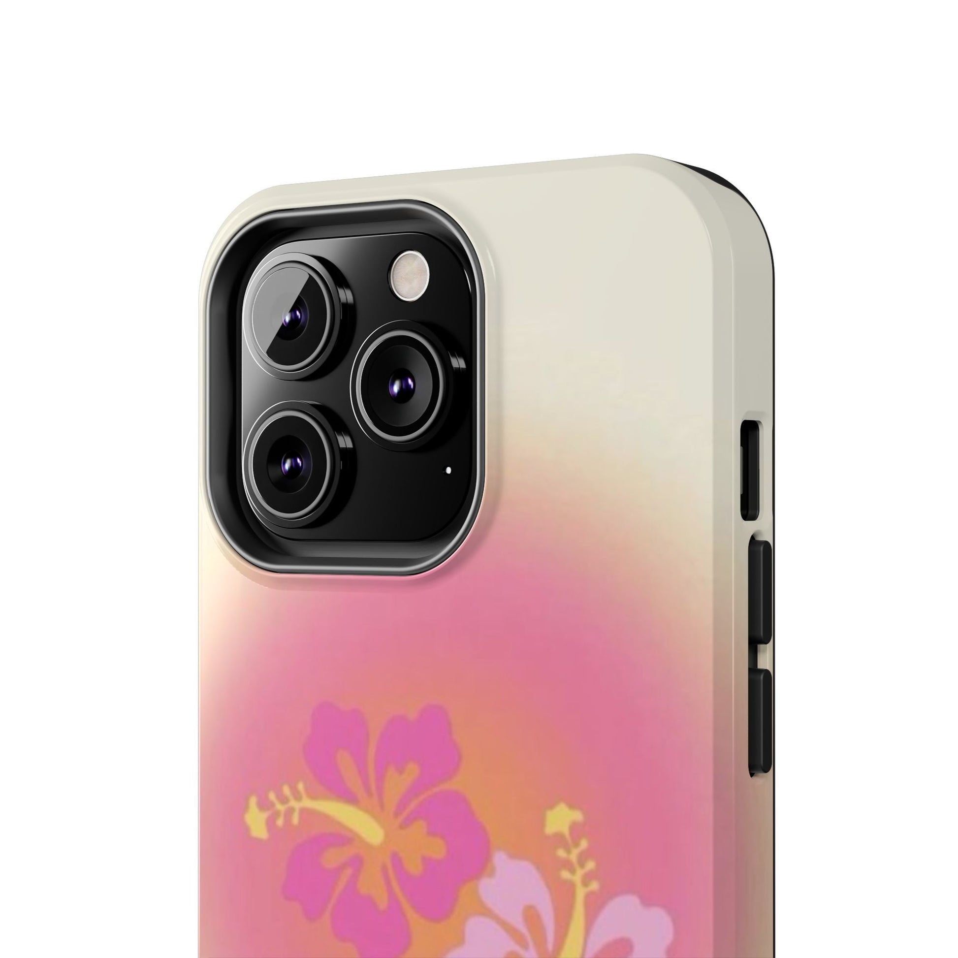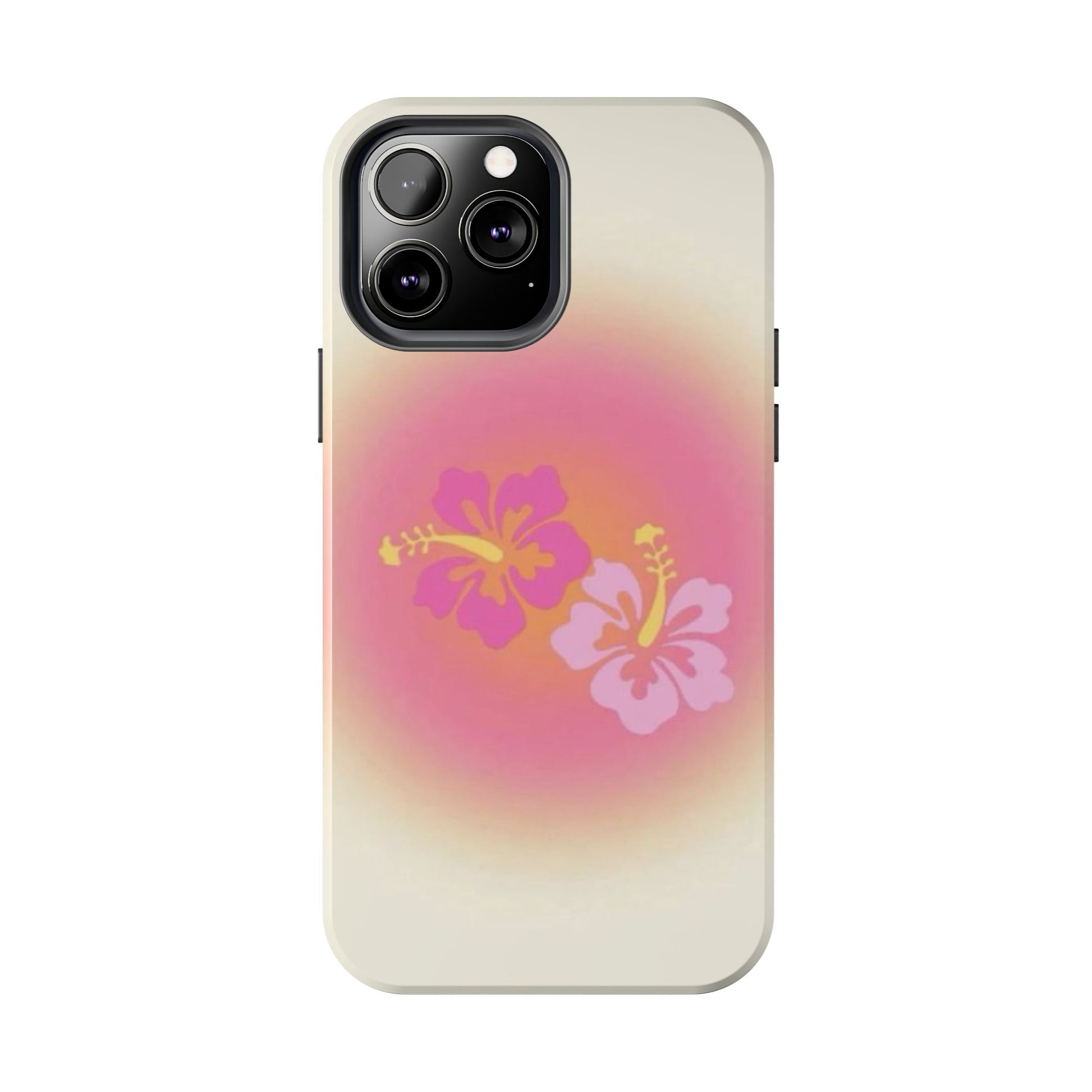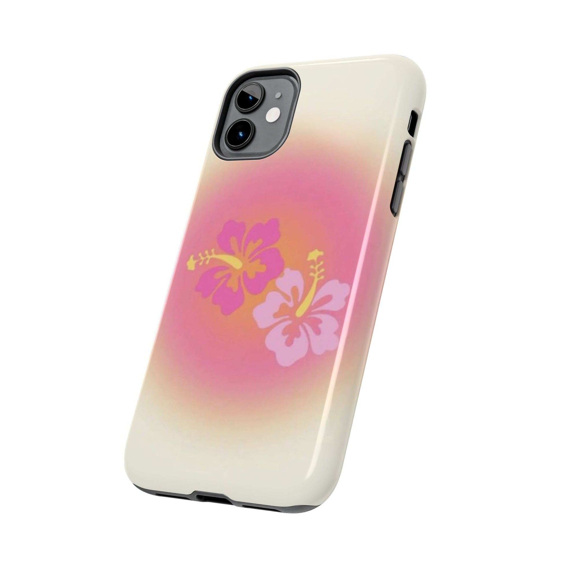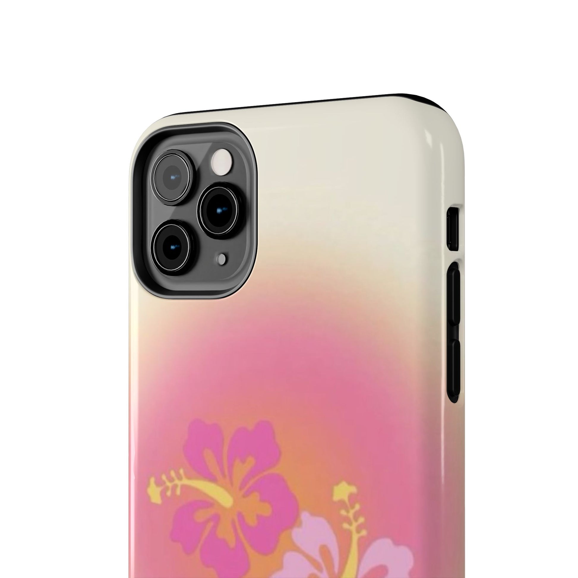 Pink Tropical Phone Case, Hawaiian, Hibiscus, Pink, Orange, Aura, Aesthetic, Clean Girl, Preppy, Beach, Los Angeles, Miami, Glossy Phone Case