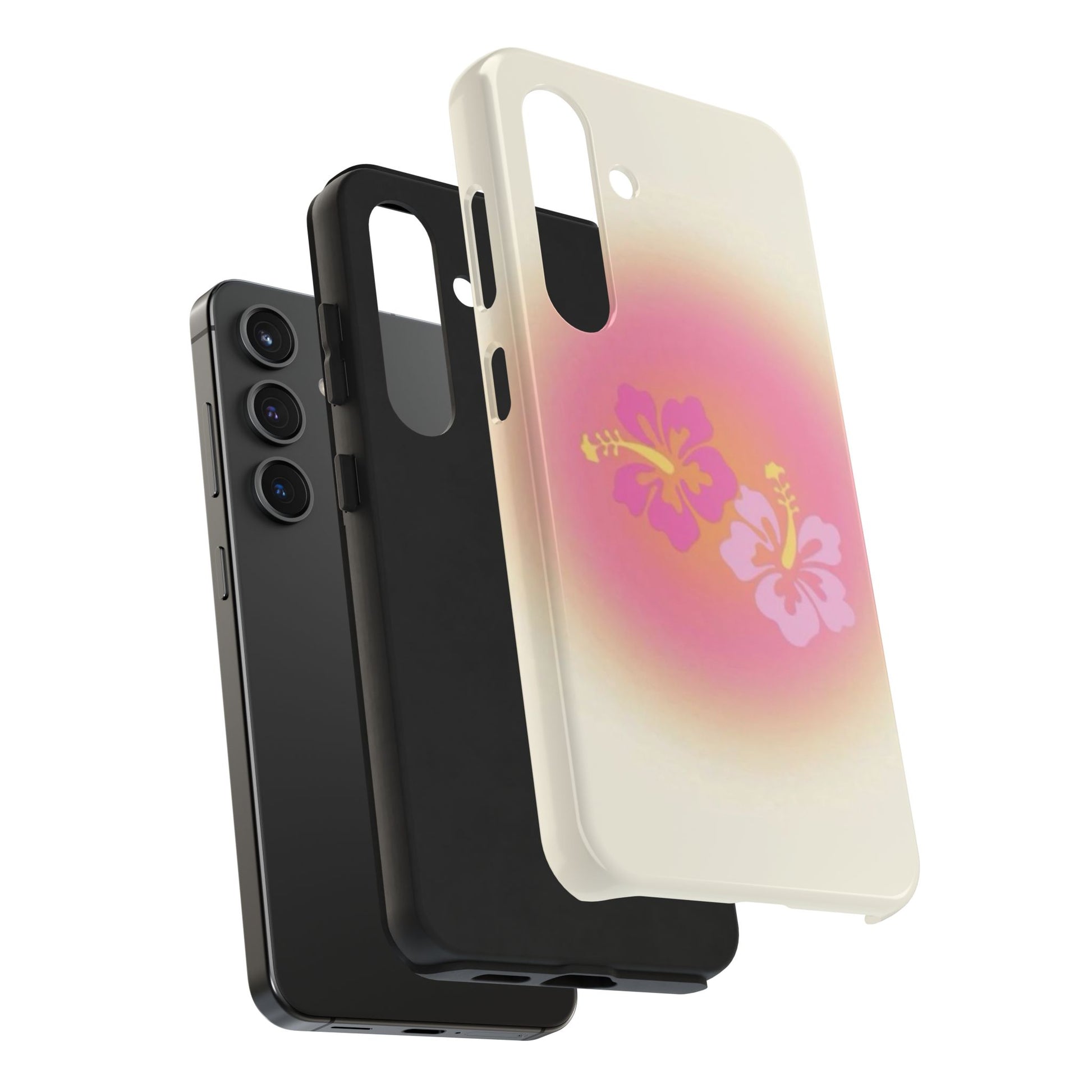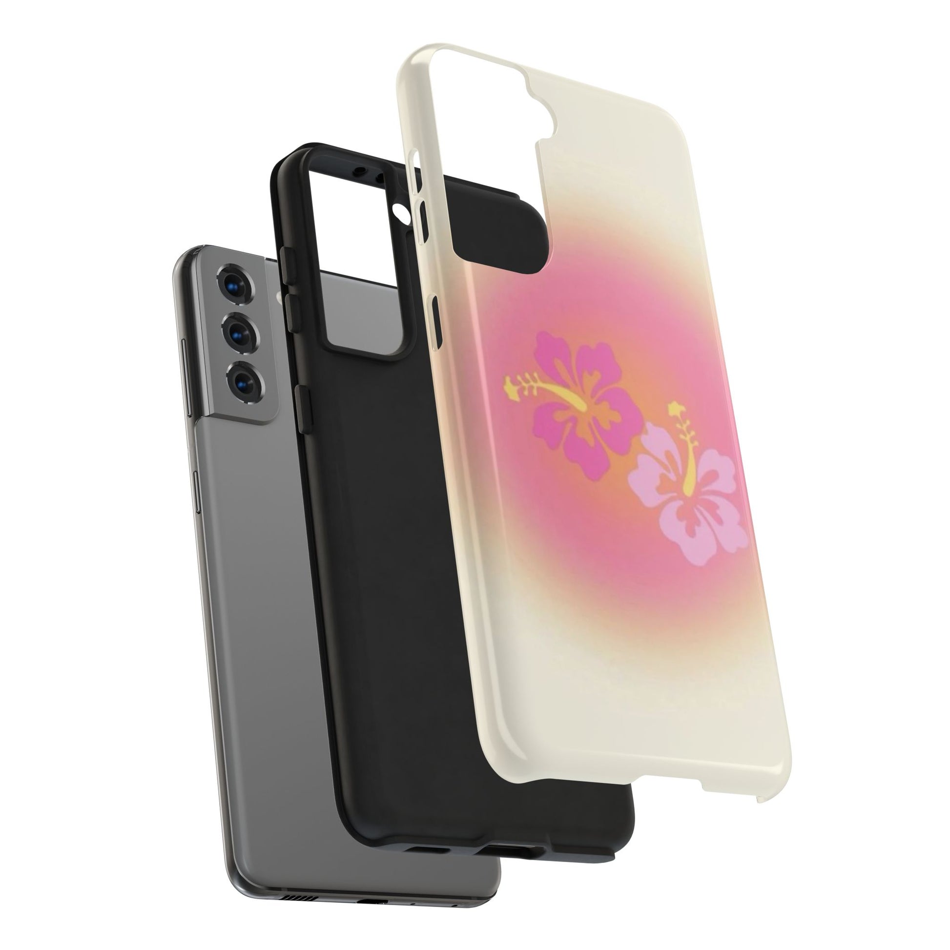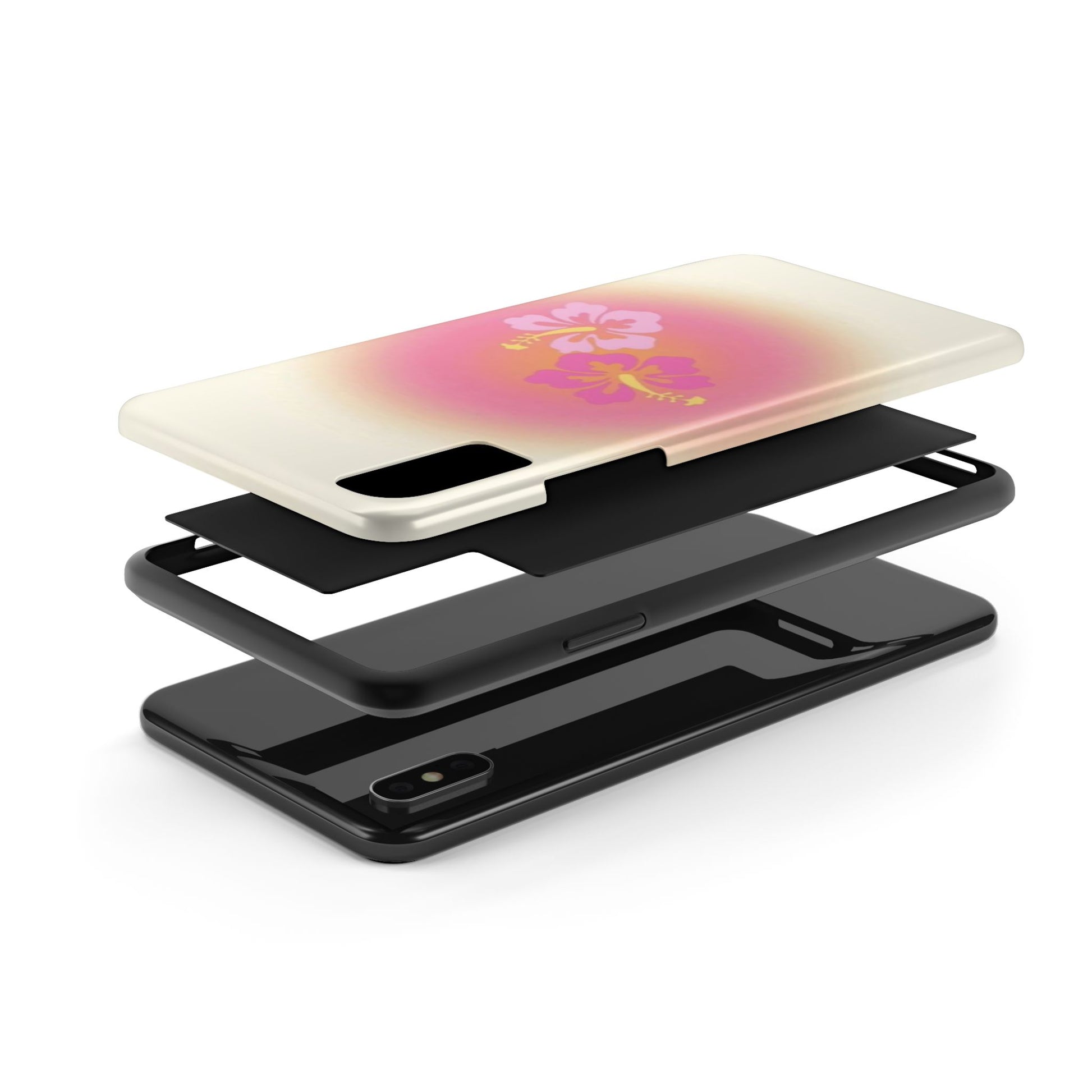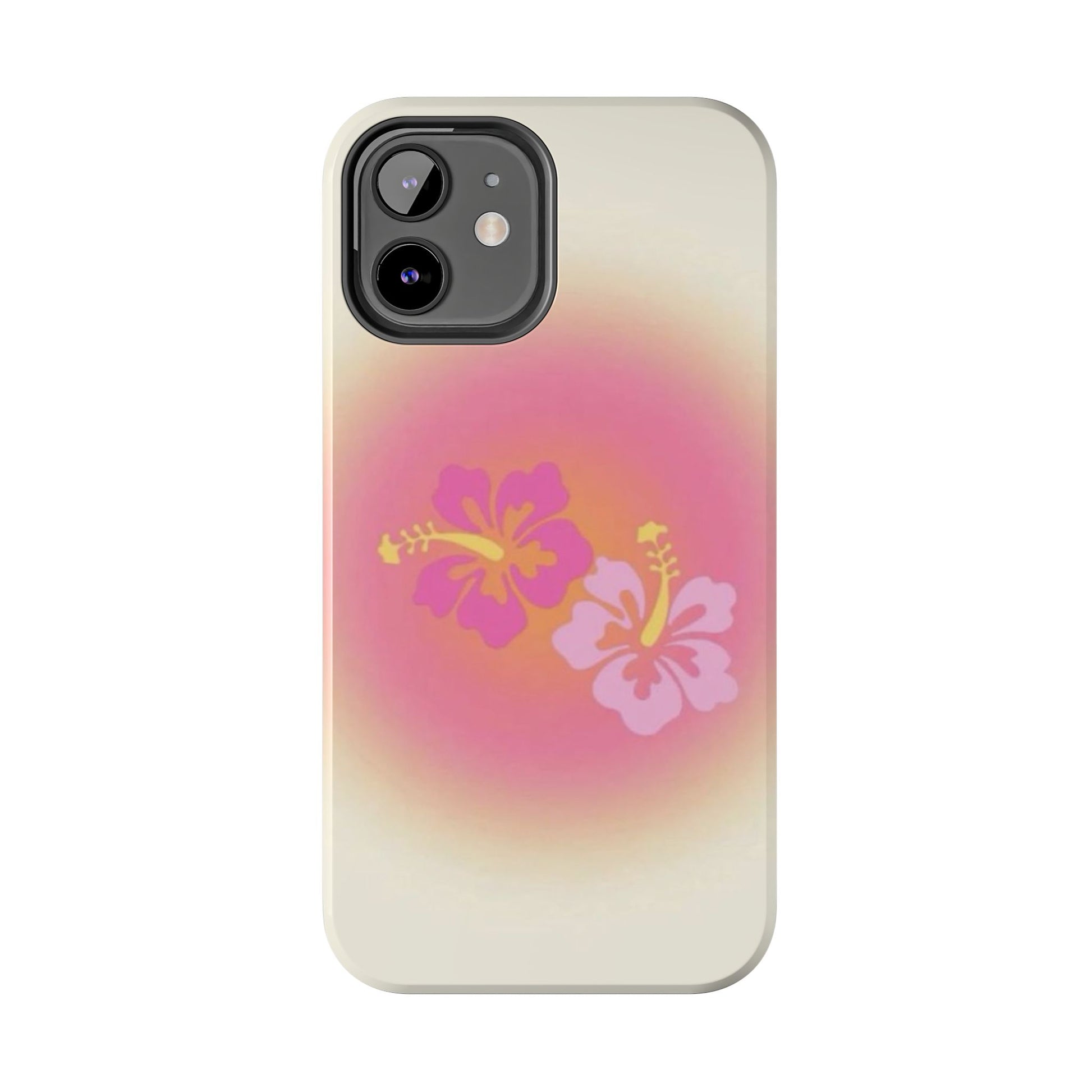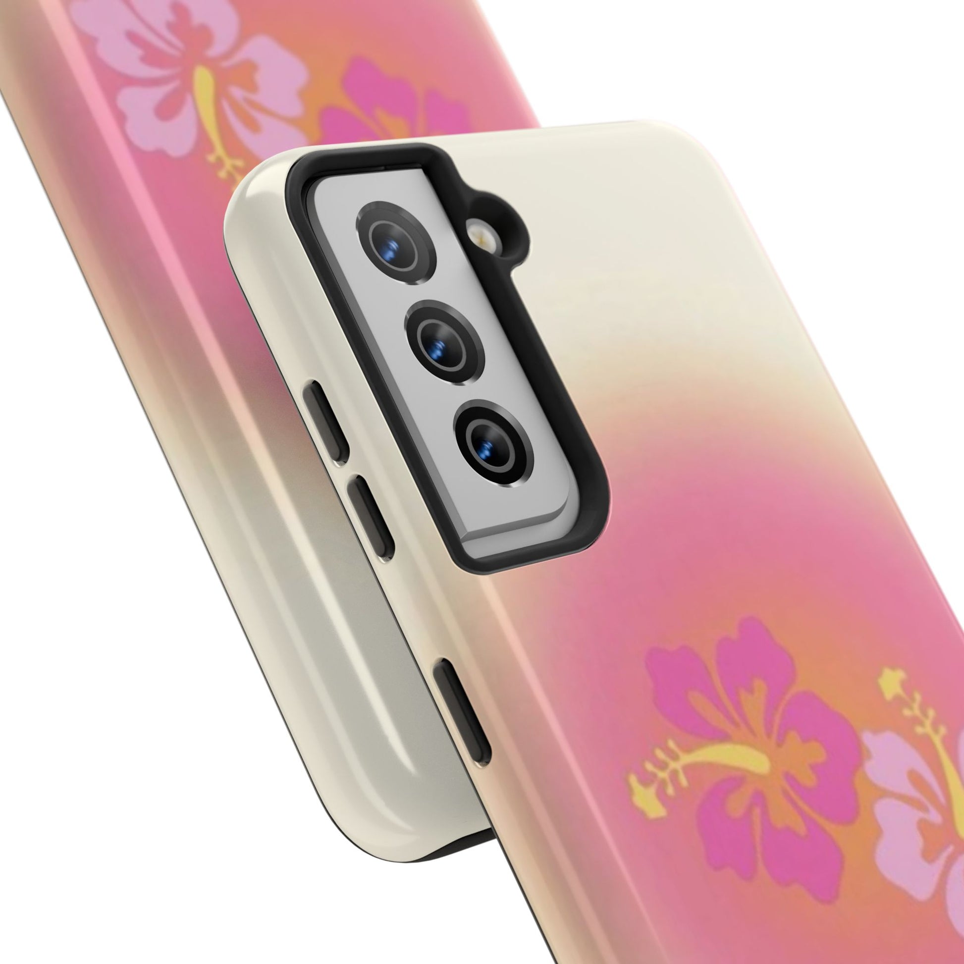 Pink Tropical Phone Case, Hawaiian, Hibiscus, Pink, Orange, Aura, Aesthetic, Clean Girl, Preppy, Beach, Los Angeles, Miami, Glossy Phone Case