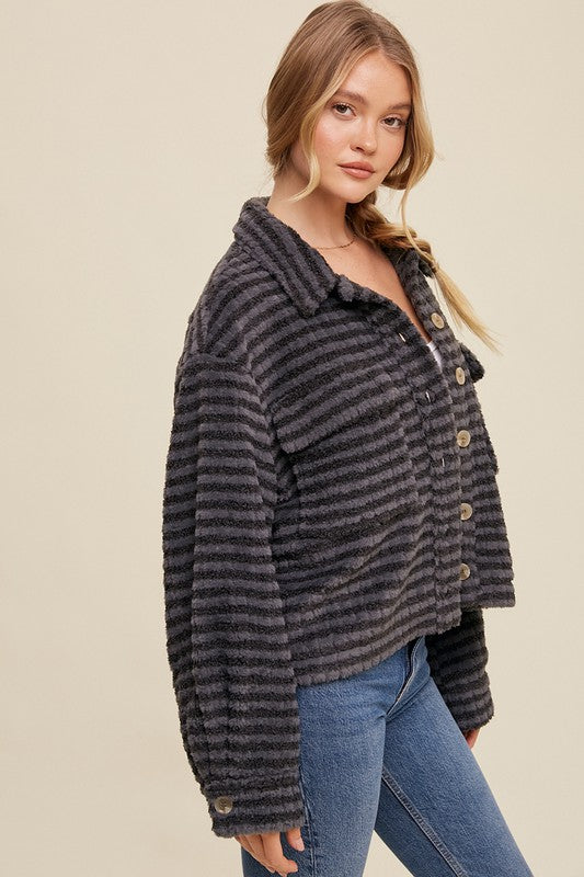 Get ready to cozy up in style with our Button Down Plaid Fleece Shacket. This versatile piece combines the comfort of a fleece jacket with the trendy silhouette of a shirt, making it perfect for chilly days. This Loose Fitting Fleece Shacket is a must-have addition to your casual wardrobe for staying warm and fashionable all season long.