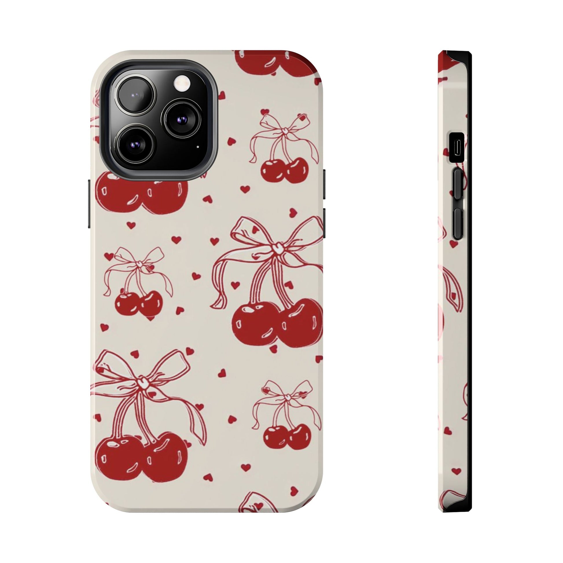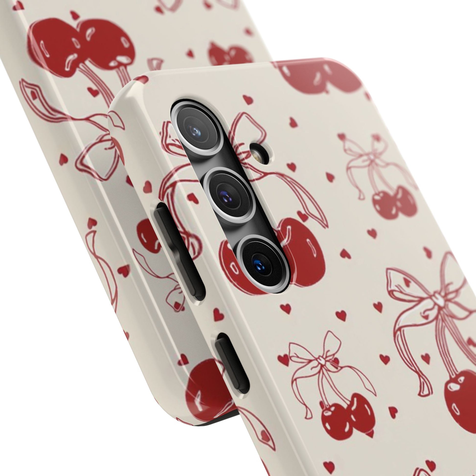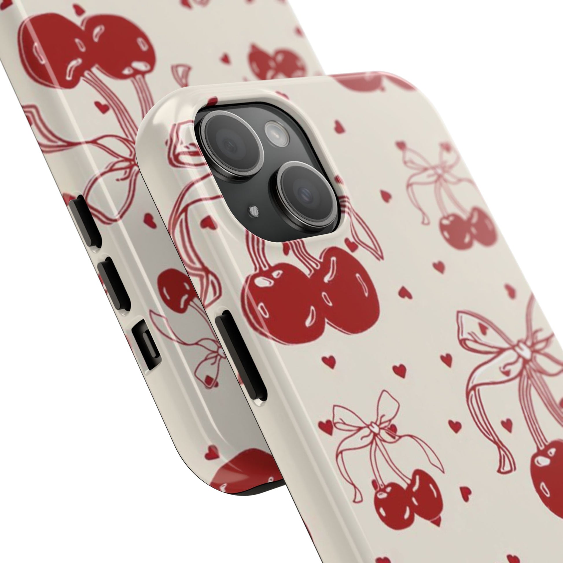 Red Cherry Pattern Fashion Aesthetic Glossy Phone Case