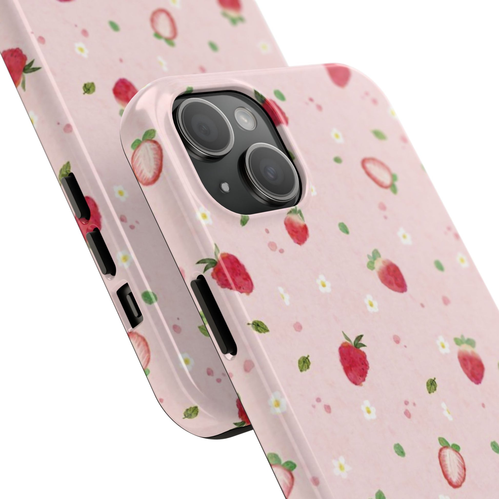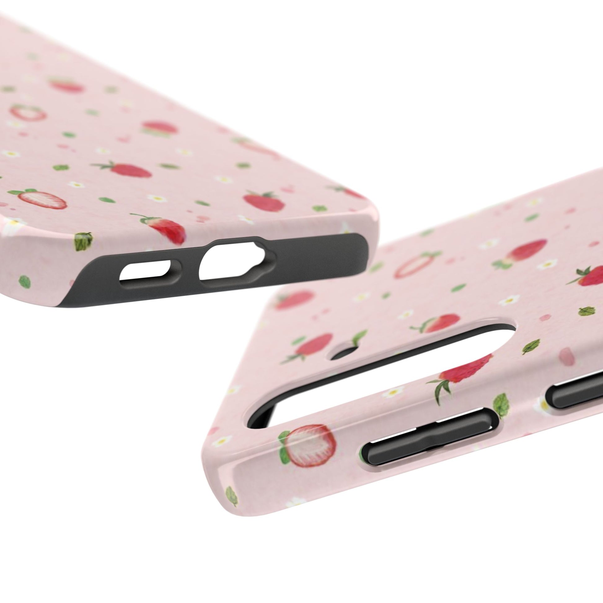 Strawberry Coquette Phone Case, Pink, Farmcore, Garden, Fairy, Spring Vibes, Fruit, Cute, Clean Girl, Glossy Phone Case